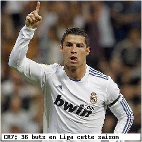 Les journées se suivent et se ressemblent pour Cristiano Ronaldo. Après avoir marqué 4 buts sur le terrain du FC Séville, le joueur portugais a réalisé un triplé contre Getafe. Bien servi par Mesut Özil sur ses deux premiers buts, Ronaldo a marqué son dernier but de la soirée sur penalty. Avant ça, l'attaquant français Karim Benzema avait marqué le troisième but madrilène. Alors que la Liga est déjà attribuée au FC Barcelone, le titre de meilleur buteur de la Liga n'est pas encore définitivement décidé. CR7 a néanmoins un très net avantage puisqu'il compte déjà 36 buts à son compteur en championnat d'Espagne. L'attaquant portugais n'est qu'à 2 buts du record de 38 réalisations détenus conjointement par Hugo Sánchez et Zarra